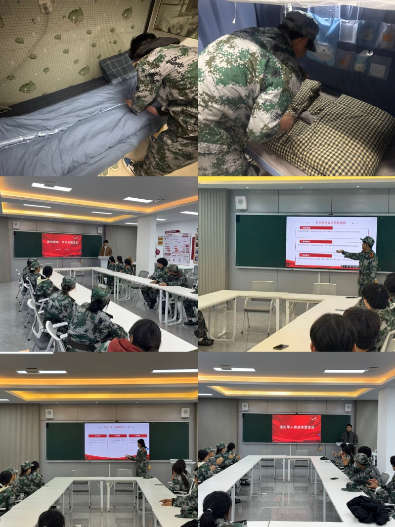 为帮助新生更直观地了解军营生活,树立国防观念,学院特别邀请了部分优秀退伍复学大学生代表走进训练场,与新生进行面对面交流分享。学长学姐们结合自身服役经历,生动讲述了在部队的训练、学习、生活情况以及收获与成长。他们分享了从懵懂青年到合格军人的蜕变历程,讲述了战友情深、为国戍边的自豪与荣光,也展示了退伍后在学习、工作上继续保持的优良作风。真实的经历、真挚的情感、榜样的力量,深深吸引了新生,互动环节气氛活跃。分享会有效消除了同学们对军营的神秘感与距离感,让“携笔从戎、参军报国”的梦想变得更加清晰和贴近,激发了部分同学投身国防事业的向往与热情。
