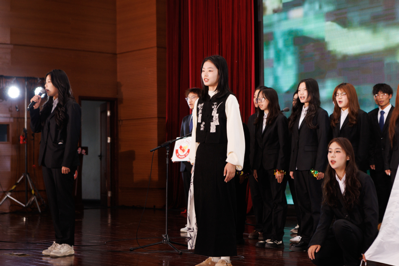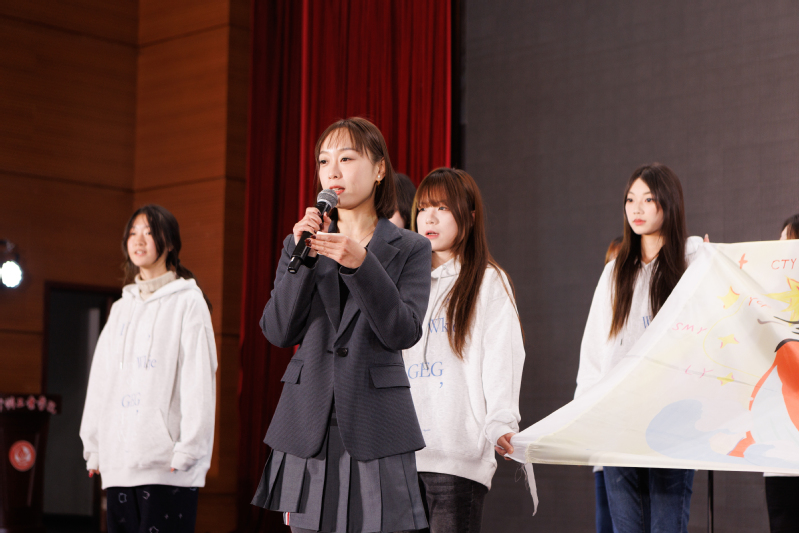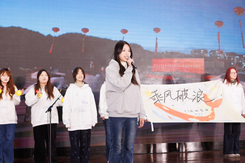 比赛现场,各班同学热情洋溢,倾情展示。《有我》《一起向未来》《仰望星空》等一首首歌曲都传递着青春正能量。班歌或怀旧、或新潮、或抒情、或昂扬,虽风格迥异,但都用满腔热情表达了对党和祖国的热爱。班徽设计构思精巧、各具特色,展示出同学们对梦想的不断追求和对未来职业美好愿景。一面面色彩鲜艳的班旗,一首首脍炙人口的班歌,一张张昂扬笑意的青春面容构成了今晚最绚丽的风景。25级班主任老师全部参加活动,师生同台的场景带动了全体同学的热情,奉献了一场文化和娱乐的饕餮盛宴。