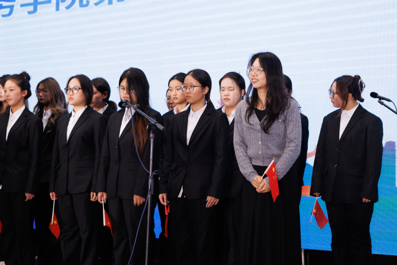 为丰富学生课余文化生活,增强班级凝聚力,擦亮学院文化活动品牌,数字商务学院于12月8日晚举办“班歌嘹亮展风采,班徽闪耀映初心”第十五届班歌班徽大赛。数字商务学院党总支书记马军、副书记吴佳伟、全体辅导员25级班主任以及25级全体学生参加了活动。