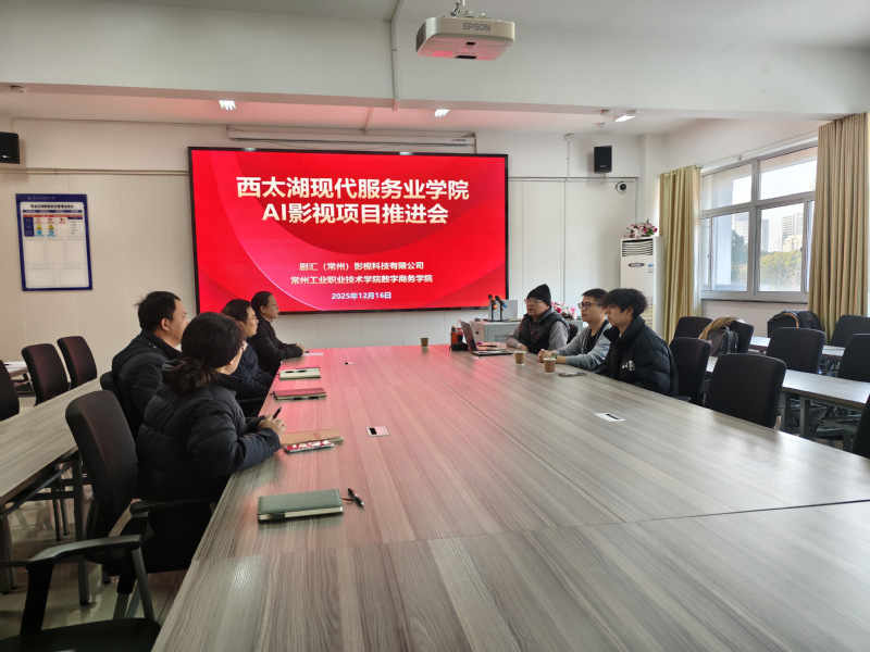 12月16日,数字商务学院与剧汇(常州)影视科技有限公司在敬业楼313召开AI影视项目建设推进会,共商校企协同AI漫剧人才培养。