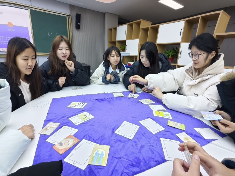 “OH卡牌解读”活动聚焦自我探索,吸引了众多同学驻足参与。活动现场,陈老师凭借专业的心理辅导经验,引导同学们借助兼具画面感与文字提示的OH卡牌,逐步敞开心扉。大家围绕卡牌内容分享内心的真实感受,梳理潜藏的情绪困惑,在老师的针对性引导和同学的倾听陪伴中,深化了对自我的认知,学会了更好地接纳自身情绪,活动现场始终保持着轻松、安全的交流氛围。