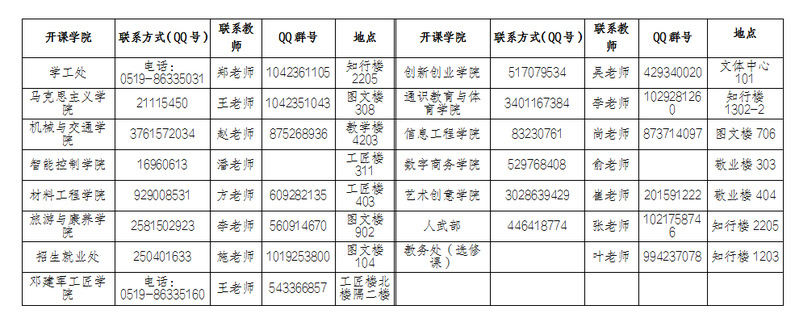四、开课学院负责教师联系方式: