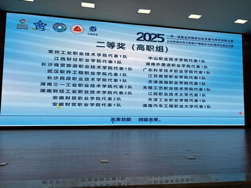 11月28日至30日,2025 “一带一路”暨金砖国家技能发展与技术创新大赛之业财数据应用与管理(产教融合方向)赛项全国总决赛在湖南商务职业技术学院圆满落幕。数字商务学院大数据与会计专业团队凭借扎实的专业功底、默契的团队协作和出色的实战能力,从众多参赛队伍中脱颖而出,斩获二等奖第一名的优异成绩,指导老师姚少雯、李晶荣获“优秀指导教师证书”,学校获评“优秀组织奖”。