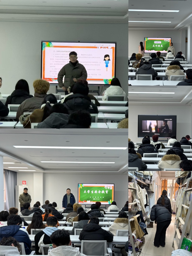 会上,辅导员王帅首先对班级治保委员和班长进行了安全教育培训,围绕校园常见安全隐患、电信网络诈骗手段及防范措施等内容展开详细讲解,要求骨干们切实履行职责,将安全意识传递给每一位同学。并现场组织同学们观看安全反诈宣传视频,通过真实案例警示大家提高警惕,避免上当受骗。