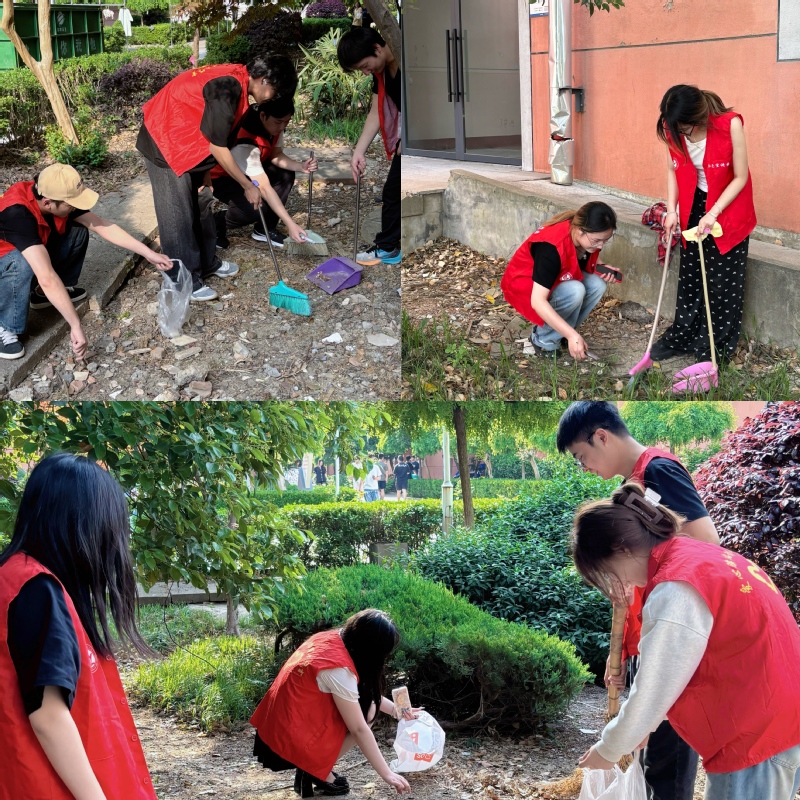 完成教室清扫后,同学们转战公寓楼下,对公共区域展开集中整治。面对路面落叶、绿化带杂物,大家手持工具,分工协作,干劲十足。面对卫生死角的顽固污渍,同学们不怕脏、不怕累,徒手捡拾垃圾、俯身清理缝隙,以高度的责任心和奉献精神,让公寓楼下环境焕然一新。