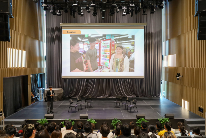活动启幕,陈总以充满感染力的欢迎词点燃现场氛围,一句“幸福是生活的底色”瞬间拉近与师生的距离。随着宣传片光影流转,镜头里的社区烟火、笑脸互动与人文景致交织呈现,将“幸福理念之地”的独特魅力娓娓道来。随后,沈雷老师主持“解码幸福:在平凡中寻找生命的火花”主题讲座,四位专业老师与两位辅导员从多元视角深入剖析幸福,点明感知力、联结感与意义感是幸福的核心要素,为学生短视频创作注入灵感。企业导师周涛结合实际案例,详细拆解剪映软件从剪辑、特效到配乐的全流程制作,助力学生掌握专业创作秘籍。