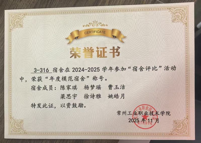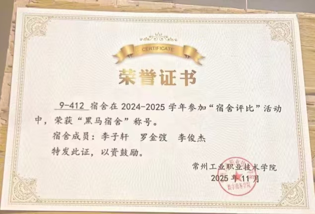 经过认真考评,活动最终评选出“年度模范宿舍”“卫生宿舍标兵”和“黑马宿舍”,并在班级内部举行了简单而隆重的颁奖仪式。班主任金老师为获奖宿舍颁发荣誉证书和小奖品,鼓励大家以此次评比为契机,持续保持良好的生活习惯。